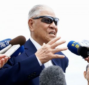 平和祈念講演で報道陣の質問に答える李登輝元総統