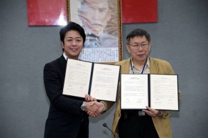 2月8日、福岡市の高島宗一郎(たかしま・そういちろう)市長と台北市の柯文哲市長は台北市産業発展局において、双方の起業支援のため人材や技術を提供することで交流を図ろうという趣旨の覚書を締結した。