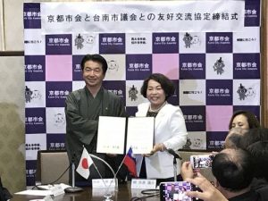 台南市議会によると、両市間の交流は近年、盛んに行われており、昨年8月、当時台南市長だった頼清徳氏が京都市の門川大作市長や寺田議長を訪問。同10月末には寺田議長が台南市を訪れた。将来的には両市間の友好交流協定の締結も視野に入れられているという。